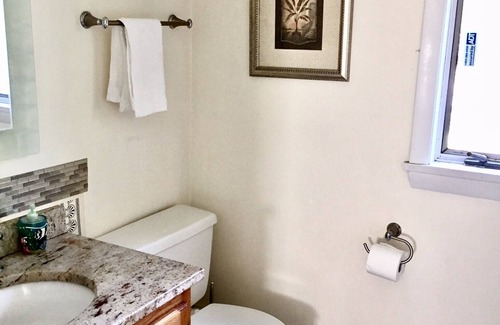 You have access to both the full bathroom on the second floor and a half bathroom on the first floor.