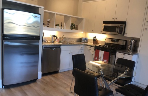 Clean, airy, comfortable, chic 736 sq ft modern home perfect for anyone looking to be right in the action of Silicon Valley. Indulge in self care through workouts / meditation / yoga with Lululemon MIRROR gym. Enjoy a deep percussive massage with Theragun mini