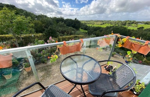 This is the first floor studio apartment in a charming hillside cottage. Own door access to stairs, landing, studio apartment and own bathroom. Parking at house. Private balcony with table and chairs overlooking owners' garden. Access to private riverside decking with table and chairs. (Please note access is by rustic stone steps and care is advised.)