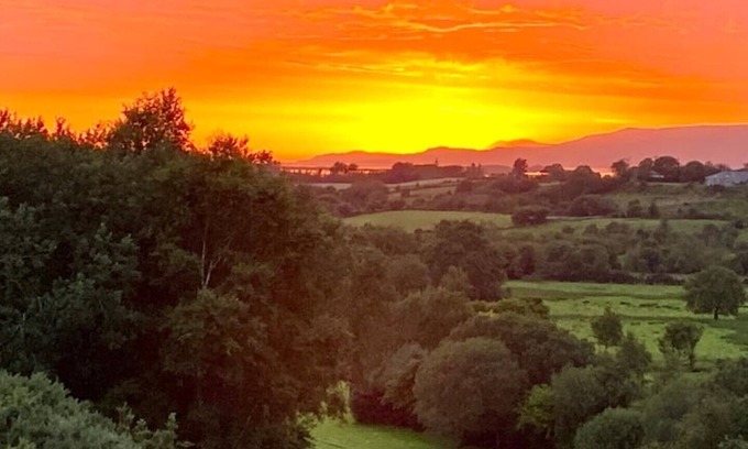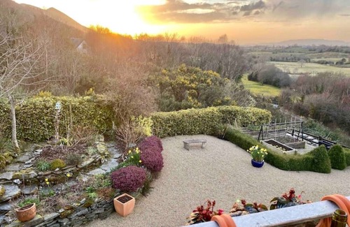 Very quiet large bright apartment on elevated site overlooking owners' garden, farms, valley below with distant views of Croagh Patrick and Clew Bay. Kingsize bed, single bed, fully equipped kitchen, 2 sofas, WiFi and smart TV with Netflix. Owners reside part-time downstairs. Travel cot and additional single bed available by arrangement.