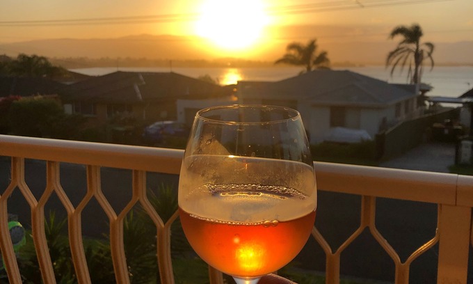 -watching sun set from the balcony/living room