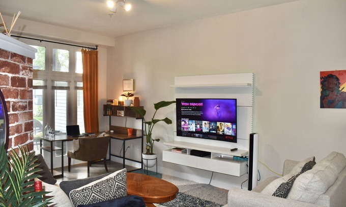 Experience the best of Atlanta! Studio is centered perfectly in the Midtown and Downtown Atlanta area. On Marietta Street you'll find walkable bars, lounges, and excursions. The best part: 10-min drive to every Atlanta Landmark: Mercedez-Benz Stadium, State Farm Arena, Coca-Cola Factory, and the Georgia Aquarium. Book your stay with us for an exclusive tour guide! A spacious stay for you, your family and friends! Styled for comfort, equipped with ALL living essentials, and functional workspaces.