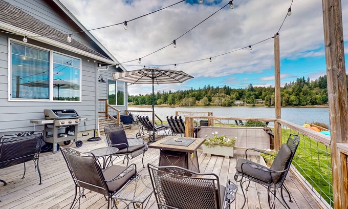 Entire waterfront property with hot tub, fire pits, patio & private beach access | Hotel in Shelton