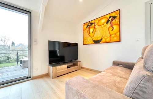 This apartment offers air-conditioned accommodations with free Wifi. Outdoor seating is also available at Entre deux Rives - Vue sur la Ville - Spacieux. Offering a terrace with river views, this apartment also features a flat-screen TV, a well-equipped kitchen with a dishwasher, an oven, and a microwave, as well as 2 bathrooms with a walk-in shower and a hair dryer. This apartment is allergy-free and non-smoking. Pau Pyrénées Airport is 56 miles from the property.