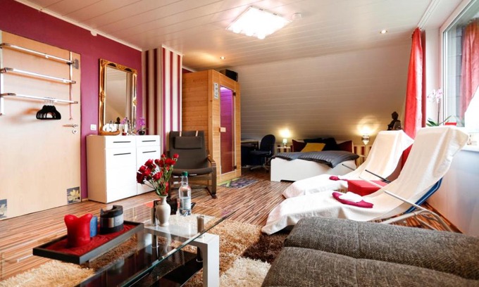 A good location for a relaxing getaway in Schotten, Entspannen, genießen, einfach mal zurücklehnen is a homestay surrounded by views of the garden. The property features a seasonal outdoor swimming pool, garden, and parking on-site among other facilities. There's a private entrance at the homestay for the convenience of those who stay. The accommodation offers a sauna, free Wifi throughout the property, and family rooms. All units come with a seating area, a flat-screen TV with satellite channels, and a shared bathroom with bathrobes, hot tub, bath, and shower. A microwave, a fridge, and kitchenware are also offered, as well as a coffee machine and a kettle. At the homestay, the units include bed linen and towels. As an added convenience, the homestay offers packed lunches for guests to bring on excursions and other trips off-property. For guests with children, Entspannen, genießen, einfach mal zurücklehnen provides outdoor play equipment. Guests at the accommodation can enjoy skiing and cycling nearby, or make the most of the sun terrace. Concert Hall Bad Orb is 31 miles from Entspannen, genießen, einfach mal zurücklehnen, while Gießen Congress Centre is 22 miles from the property. Frankfurt Airport is 55 miles away.