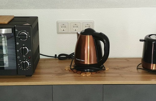 The kitchen is equipped with an oven, a stovetop, and a refrigerator, as well as a coffee maker, an electric kettle, and a microwave. Bathroom amenities include a hair dryer, towels, and soap. And because there's access to laundry facilities, you can go a bit lighter on your packing. Other amenities include bed sheets, an ironing board, heating, and a dining table.