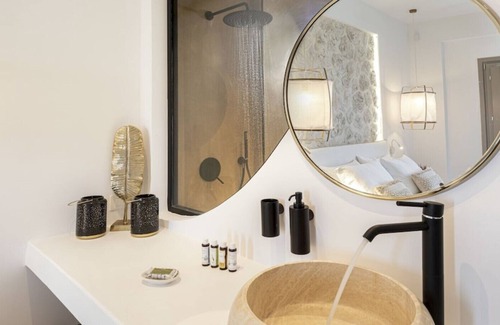 The Eolia Gold Villa with Private Heated Pool , an elegant two-storey house, combines homely warmth with elegant luxury in its effort to give you the unparalleled experience of your dream vacation. Made entirely out of local raw materials, its handcrafted artifacts blend harmoniously with its clean architectural lines, creating an atmosphere of Zen.
