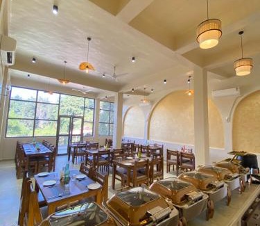Located in Rājgarh, 17 miles from Lakshmana Temple, Eriline Resort has accommodations with a garden, free private parking and a restaurant. Featuring dry cleaning services, this property also provides guests with a playground. The resort provides an indoor pool, entertainment staff and room service. At the resort, the rooms have a closet. The private bathroom is equipped with a shower, free toiletries and a hairdryer. All rooms at Eriline Resort have air conditioning and a desk. A buffet, à la carte or continental breakfast is served at the property. Speaking English and Hindi at the 24-hour front desk, staff are ready to help around the clock. Kandariya Mahadeva Temple is 17 miles from the accommodation. Khajuraho Airport is 16 miles from the property, and the property offers a paid airport shuttle service.
