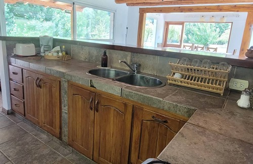 The property consists of 6 hectares. A small stream at the entrance, a forest of native trees and walking through the property you can enjoy a unique landscape with a beautiful view of the Mountain Range and Cerro Piltriquitron. Close to El Bolsón and shops. You will be able to visit the Craft Fair, the rivers, and lakes without traveling great distances. The house is spacious and ten people fit comfortably. Spectacular nights making your own barbecue.