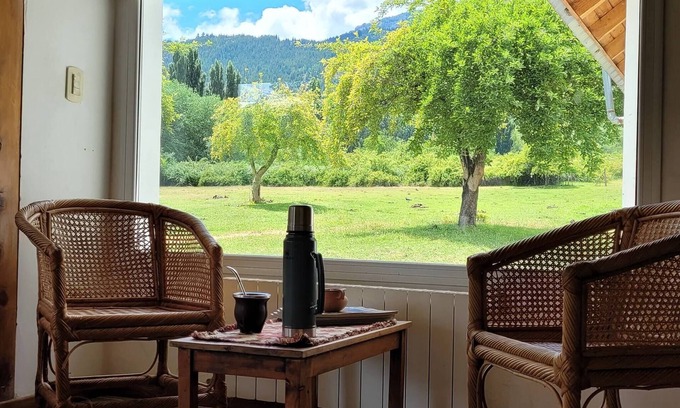 Farm one mile from the city center and 100 meters from Route 40. Sensational view of the Piltriquitron and the Cordillera. Six hectares with a stream. House with all the comforts. Supermarket 300 meters away. On the way to the paragliding platform on the Hill. The number of beds available is 10 (ten). Minimum: 3 Nights