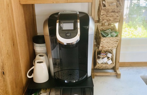 This bright, fully-furnished home features two balconies and a front porch to the entry area with a bistro table and sitting area for relaxing in the fresh air. For your entertainment, there are three smart TVs - two on the main level and one in the loft - along with board games and puzzles. If you plan to work during your stay, there is a fold-down desk in the entryway and a workstation desk and chair in the loft. The open-concept living area includes a lounging, dining, and kitchen space perfect for friends, couples, families, or quality time on your own! Added bonus - all water for drinking, cooking, and bathing is refreshing and delicious (and doesn't contain harmful chemicals) due to our whole-house water filtration system.