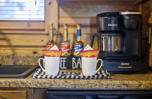 Sleeping up to 4 guests with 1 King bed and 1 Queen bed, 'The Cascade' is dog-friendly, with a 50$ pet fee per dog and a limit of 2 dogs under 50lbs. No cats are permitted on the property, and pets must be crated if left unattended in the cabin.