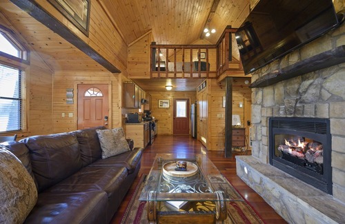 Upstairs, the second bedroom loft features a comfortable memory foam Queen-sized mattress, television, and a bird's-eye view of the entire 1000 sqft cabin. Enjoy the wrap-around deck with plenty of seating, a propane grill for BBQ dinners, and a brand new 4-person hot tub. In the evening, gather around the upgraded fire pit on the comfortable Adirondack chairs surrounded by towering trees.