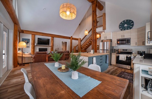 Maximum 7 adults. Welcome to Cedar Peaks, a classic log cabin set amongst the mountains of Sunshine Valley, where outdoor adventure and indoor relaxation await. The log cabin features stunning western red cedar logs with cozy & inspiring spaces, gourmet kitchen and mountain views from all parts of the cabin. Nordic or alpine skiing, snowshoeing at nearby Manning Park and endless hiking, fishing or ATV'ing outside the front door. Pure outdoor adventure year-round.