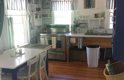 - Cape Farmhouse Kitchen featuring a Stainless Steele Fridge, Dining Table, Stove, Microwave, Coffee Maker, Electric Tea Kettles and fully equipped with dishes & bake ware.