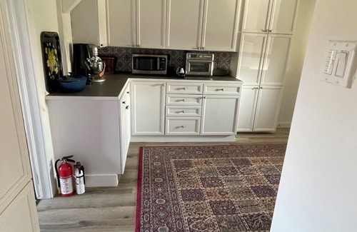 On the main level, the spacious eat-in country kitchen is fully equipped with a professional 36” gas range, quality cookware, a full range of appliances (fridge, dishwasher, microwave, coffee maker, espresso machine, toaster, air fryer, food processor, stand mixer kettle), and is well stocked with cooking utensils, dishes, and glassware. Guests can gather around the large island while you prepare a meal or gather in the cozy adjacent seating area by the gas fireplace. A harvest table provides another spot to share casual meals.