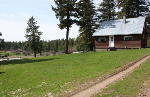 Welcome to our Country Cabin! If you want natural beauty, privacy, a get away - but close to Coeur d'Alene, Spokane, Coeur d'Alene Casino, or the lake - this is the place for you! We feature a 3 bedroom/2 bath cabin, a fully equipped kitchen, The views from the kitchen and upstairs bedroom over our private ponds (kayaks available) are beautiful and peaceful. We have over 100 acres with miles of trails for you to explore, and end of the road privacy. Rustic feel with modern amenities. Come experience serenity!