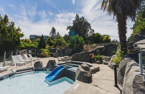 Guests staying at Pacific Shores resort have access to resort amenities such as pools, beach areas, and seasonal equipment (e.g kayaks, paddleboards). Please note that these amenities are operated and managed directly by the resort. While they are typically available during peak seasons, we do not have control over their hours, availability, or operating decisions.