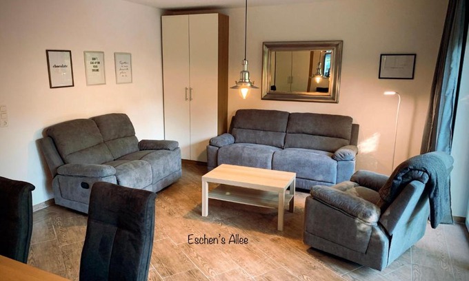 Featuring a garden, Eschen´s Allee features accommodations in Aurich. This apartment offers free private parking, private check-in and check-out, and free Wifi. Outdoor seating is also available at the apartment. Offering a terrace and garden views, the apartment includes 3 bedrooms, a living room, cable flat-screen TV, an equipped kitchen, and 1 bathroom with a bath and a shower. Towels and bed linen are featured in the apartment. For added privacy, the accommodation features a private entrance. Otto Huus is 17 miles from Eschen´s Allee, while Emden Kunsthalle art gallery is 17 miles away.