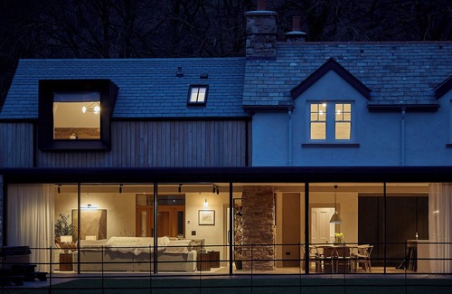 Eskdale Retreat is a luxurious property split between a main house and a coach house, offering eight en-suite bedrooms. The main house includes two super-king-size (zip/link) with freestanding baths and en-suite walk-in shower, two super-king-size (zip/link) with en-suite showers, a twin (zip/link) with an en-suite shower, and a bunk room with an en-suite shower. There's also an open-plan kitchen, dining, and sitting area with a woodburning stove, a snug, utility room, a cinema room, and an Alpine-style boot room with boot warmers/dryers. The coach house has a ground-floor super-king-size (zip/link), a super-king-size, and a kitchen, dining room, and sitting room. There's also WiFi, Bluetooth sound systems, and a Nespresso coffee machine. Outside, enjoy private gardens, a hot tub, bike storage for 16, and EV charging for two cars. Two well-behaved dogs welcome. Services such as private dining, adventure activities, guided hikes, and yoga can be arranged with the owners. Book Eskdale Retreat today for a luxury getaway! Please note: During the school summer holidays this property only accepts week long bookings
