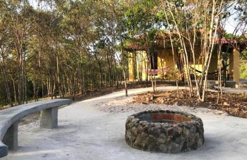 Providing a garden, Espaço Terra Dourada, Ibicoara, Chap Diamantina provides accommodations in Ibicoara. This property offers access to a terrace, free private parking, and free Wifi. The vacation home consists of 1 bedroom, a living room, a fully equipped kitchen with an oven, and 1 bathroom with a shower and a hair dryer. Guests can take in the views of the mountain from the balcony, which also has outdoor furniture. The vacation home offers bed linen, towels, and laundry service. During warmer months, you can make use of the barbecue facilities and eat on the private patio. Guests at the vacation home will be able to enjoy activities in and around Ibicoara, like hiking. The vacation home also offers outdoor fireplace and a picnic area for a day outdoors. Lençóis Airport is 117 miles away.