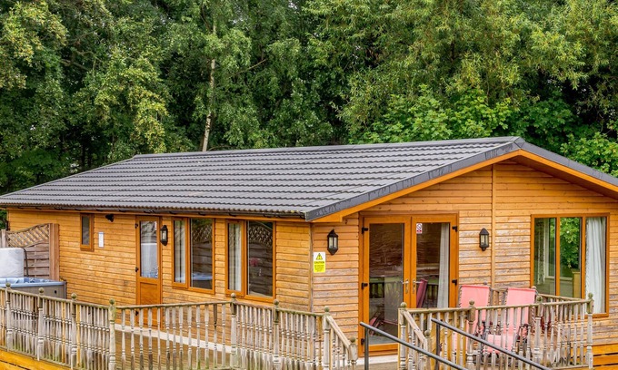 Amenities: LPG central heating. Gas oven and hob, microwave, fridge/freezer, dishwasher, TV with Freeview, DVD, WIFI, selection of books, games and DVDs. Fuel and power inc. in rent. Bed linen and towels inc. in rent. Cot and highchair on request. Ample off road parking. Bike storage available by arrangement. Decked balcony with furniture and hot tub. Shared open grassed areas to side. Up to two well-behaved dogs welcome. Sorry no smoking. Shops and pubs 2.25 miles. Note: Property is accessed via 3 steps leading to the balcony and the entrance. Note: There is an unfenced water feature in the park, children and pets to be supervised. Note: Property has a private water supply. Note : Max 4 adults, 2 children and 1 infant. Note: Bookings will not be accepted for guests aged 25 or under. Note: This property has a Good housekeeping Bond of £250
