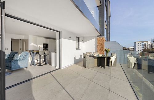 - With large, bi-folding doors the balcony opens completely to provide that open feel to the rest of the apartment