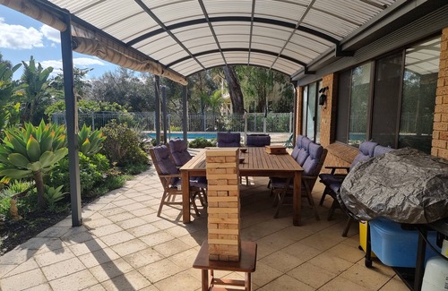 Yes, this Leschenault house has a swimming pool. Check the Facility Overview section for details about the pool and other available facilities.