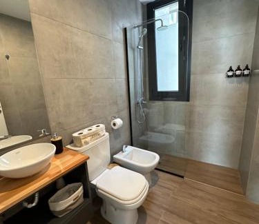 BathroomBidet, Towels, Body soap, Shower, Walk-in shower, Conditioner, Free toiletries, Shampoo, Private bathroom, Hairdryer, Toilet, Toilet paperMedia & TechnologyFlat-screen TV, Cable channels, Streaming service (like Netflix), TVGeneralFire extinguisher, Heating, Key card access, Tile/Marble floor, Private entrance, Air conditioning, Trash cansKitchenStovetop, Toaster, Electric kettle, Wine glasses, Oven, Cleaning products, Kitchenette, Kitchenware, Washing machine, Refrigerator, Coffee machine, Dining table, MicrowaveLiving AreaSitting area, Dining areaBedroomWardrobe or closet, LinensViewCity viewOutdoorsTerraceAccessibilityAccessible by elevator, Upper floors accessible by elevatorBuilding CharacteristicsDetached, Private apartment in buildingRoom AmenitiesHypoallergenic pillow, Non-feather pillow, Clothes rack, Socket near the bedFood & DrinkBottle of waterPhysical distancingSingle-room AC for guest accommodationCleanliness & disinfectionHand sanitizer |