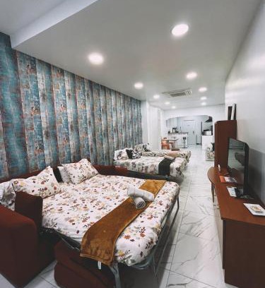 Food & DrinkChocolate/Cookies, Tea/Coffee maker, Bottle of waterBathroomFree toiletries, Private bathroom, Shower, Body soap, Bathtub or shower, Toilet paper, Hairdryer, Bathtub, Toilet, TowelsMedia & TechnologyFlat-screen TV, TVGeneralPrivate entrance, Tile/Marble floor, Trash cans, Fire extinguisher, Key access, Interconnecting room(s) available, Ironing facilities, Iron, Air conditioning, Heating, Fan, Smoke AlarmKitchenStovetop, Cleaning products, Coffee machine, Oven, Kitchen, Kitchenette, Microwave, Toaster, Refrigerator, Washing machine, Dining table, Wine glasses, KitchenwareLiving AreaSitting area, Sofa, Desk, Dining areaViewQuiet street view, View, City viewBedroomLinens, Wardrobe or closet, Childrens' cribsAccessibilityEntire unit located on ground floor, Entire unit wheelchair accessibleBuilding CharacteristicsPrivate apartment in buildingRoom AmenitiesClothes rack, Non-feather pillow, Socket near the bed, Sofa bed, Adapter, Drying rack for clothing, Fold-up bedEntertainment & Family ServicesBoard games/puzzles, Books, DVDs or music for childrenLayoutWindowPhysical distancingSingle-room AC for guest accommodationCleanliness & disinfectionHand sanitizer |