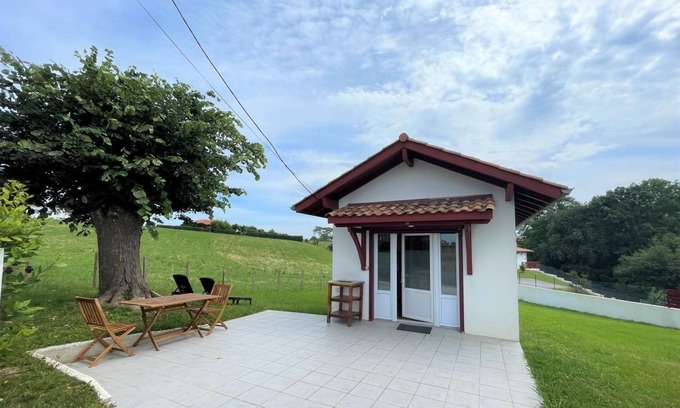 Gîte on one level in a small independent house in the countryside, 10 minutes from Biarritz and Bidart, on the edge of the road. Equipped kitchen (microwave/grill, fridge freezer, ceramic hob, washing machine, dishwasher), sofa, 1 bedroom (1 double bed), small shower room/wc. Electric heating at an additional cost. Sheets provided. Wifi internet connection (box in the gîte). Enclosed grounds, garden furniture, barbecue. The gîte is ideal for a couple.