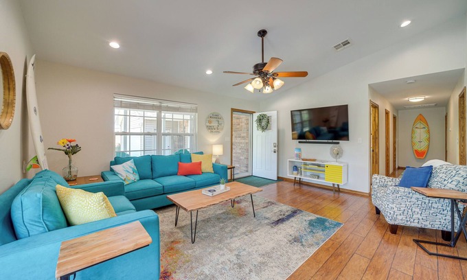 Discover the best of eastern Oklahoma when you book this 4-bedroom, 2-bathroom vacation rental in Eufaula. The colorful interior and open-concept layout create a vibrant and welcoming atmosphere. Enjoy your morning coffee on the deck while taking in the serene views or fire up the grill for a delicious barbecue. Located a short drive to Lake Eufaula State Park and Xtreme Cove Marina, this rental is the perfect base for exploring the lake. Unwind and make lasting memories in this charming house!