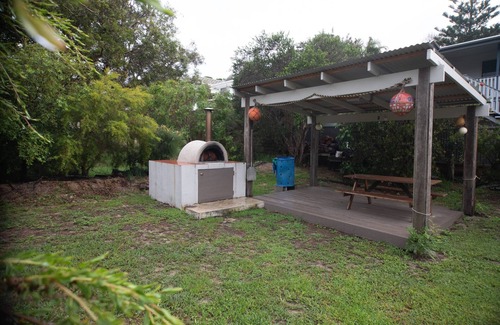 Relax at this large, eco friendly house. Imagine your own wood fired pizza - the envy of the neighbourhood. Five night minimum booking during school holidays. No Schoolies groups allowed. Must have good reviews.