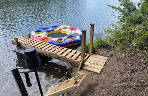 There is a shared firepit at one end of the cabins with a deck overlooking the lake for all our guests to use, as well as swimming and boat docks. Enjoy playing horseshoes and walking our trails.
