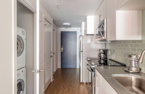 As with any Blueground apartment, you’ll find a thoughtfully designed space complete with beautiful furniture and a fully equipped kitchen in this studio property. And, thanks to our superior quality mattresses, luxury linens, and towels, you can relax knowing you’ll always feel comfortably at home. When you’re ready for some fun, you can take in the Washington, D.C. vibes or bring the entertainment to you with the premium wireless speaker or smart TV. This apartment also offers in-apartment laundry.