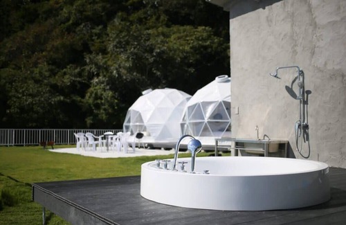 Inside the cabin, there is a shower room. An outdoor jacuzzi bath is also available for your use.