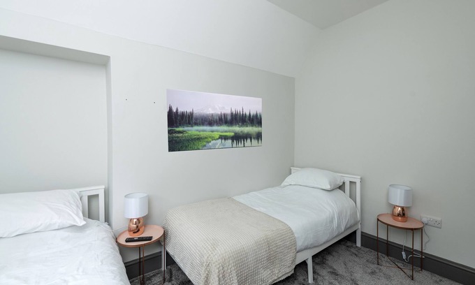 A large lounge with tv and sofas etc for your comfort, there is also a beautiful ground floor bathroom, the home has amazing character yet all mod cons including ambi light and smart tvs, sleeps 5 in upstairs bedroom and additional pull out beds can be supplied for additional guests in loung.
