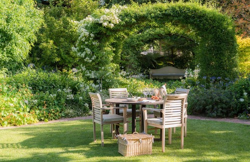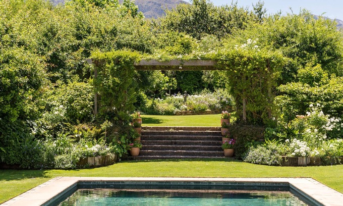 Step outside onto the spacious, airy patios and marvel at the sights before you. An inviting swimming pool will provide you with a refreshing respite from Franschhoek’s hot summer days and if you were to venture further, you would stumble upon an enchanted, lush garden that could very well be the one from Frances Hodgson Burnett’s “The Secret Garden”. With numerous paths leading to various alcoves, benches and lawns, you’ll be able to disappear for some quiet time, meditation, or even a romantic moment.