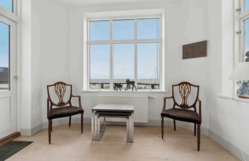 In the front row to the water, with an impressive panoramic view of the strait between Langeland and Funen, lies this large and inviting villa. The house has its own tower and spans three floors, offering plenty of space and comfort for 8 people.