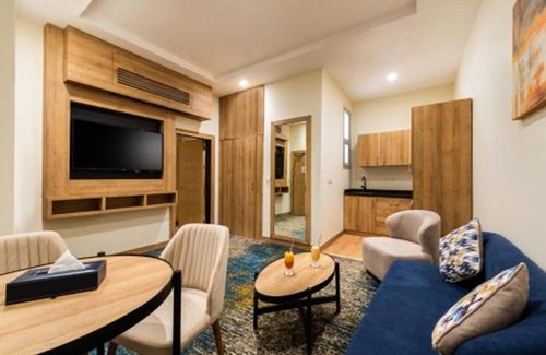 Indulge in a luxurious experience with this elegant executive suite, designed for comfort and sophistication. Featuring a spacious layout with a king-sized bed, air-conditioning, a private bathroom, minibar, work desk, and free WiFi, it’s the perfect choice for both relaxation and productivity. The property also includes premium amenities such as a fitness center, indoor pool, hot tub, and a coffee shop, ensuring a truly relaxing stay. The space Discover comfort and convenience at this modern Riyadh escape, offering well-appointed family rooms complete with air-conditioning, private bathrooms, free WiFi, minibars, and dedicated workspaces. 🍽️ Delicious Dining Enjoy a variety of global flavors at the on-site restaurant, featuring French, American, Italian, Mexican, and Middle Eastern dishes. Whether you're in the mood for brunch, lunch, or dinner, you'll love the stylish setting and family-friendly options. 🏊 Relax & Recharge Unwind with access to an indoor pool, hot tub, and a fully equipped fitness centre. The hotel also includes a cozy coffee shop, child-friendly buffet, and free parking for added convenience. 📍 Convenient Location Just 20 km from King Khalid International Airport, the property is ideally situated near top spots like Riyadh Park (8 km) and Riyadh Gallery Mall (10 km). Guests consistently praise the attentive staff and spotless rooms.