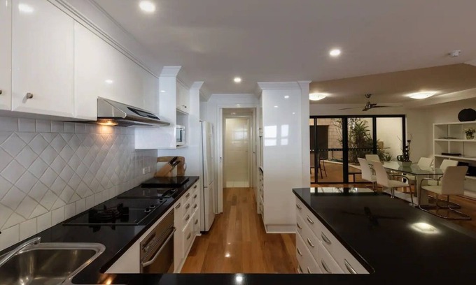 This luxurious apartment offers stunning ocean views from the stylish and comfortable living space. Enjoy a great night's sleep and wake up to breathtaking sunrises. The balcony is the perfect place to relax and watch the sunset. Take a stroll into town to explore shops, cafes, and restaurants.