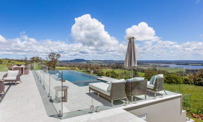 11. The back verandah leads straight out onto the fully fenced infinity edge pool and spa, which boasts stunning views of the countryside - the perfect spot to unwind.