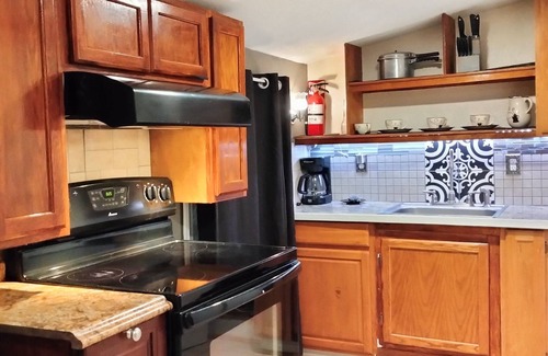 In the center of Independence lies a cozy, welcoming four-bedroom holiday house, perfect for your upcoming break. As you step inside, you'll be greeted by a fully stocked kitchen, complete with a stove, oven, refrigerator, grill, microwave, and coffee maker, making it easy to prepare delicious meals. Gather around the dining table with your loved ones and enjoy quality time together. The living room provides a cozy space to unwind, while the air conditioning and heating ensure your comfort throughout your stay. Refresh yourself in the bathroom, where you'll find towels and basic soaps. Enjoy the convenience of a washing machine and dryer, perfect for longer stays. Just a short 14-minute drive away, you can explore the excitement of Arrowhead Stadium, the T-Mobile Center, and the Ameristar Casino Kansas City, offering endless entertainment options. With free Wi-Fi and a dedicated office space, you can stay connected and productive during your vacation. This property has everything you need for an unforgettable stay in Independence.