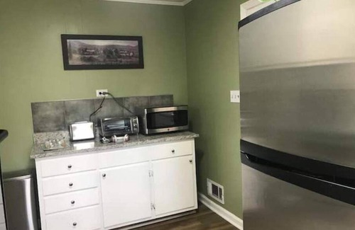 Nestled in the charming city of Griffin, this 3-bedroom vacation home offers a cozy and inviting retreat for your next getaway. As you step inside, you'll be greeted by a fully stocked kitchen, complete with a stove, oven, refrigerator, microwave, coffee maker, and all the necessary dishes and utensils to prepare delicious meals. The kitchen island provides ample space for meal preparation, while the dining table sets the stage for shared meals and conversations with your loved ones.