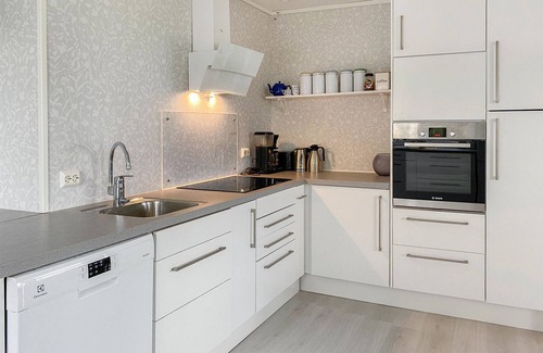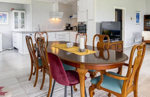 This vacation home on the beautiful island of Lepsøya with many wonderful hiking opportunities and rich animal life welcomes you and your large family! Step inside and feel the warm atmosphere. With 5 bedrooms you have enough space for your big family, maybe grandma and grandpa will come too? At the dining table in a beautiful, older style you can do puzzles. The table will certainly fit wonderfully with the family's favorite board game. Here it is simply about enjoying time with each other. The large, white kitchen will entice you with cooking fun for young and old. Maybe you'll bake a cake to enjoy tonight in the home theater or on the open patio? Divide into two teams and organize games in the large garden.