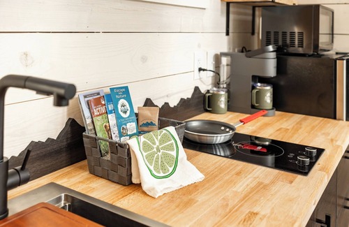 Embrace the enchanting charm of tiny house living without sacrificing luxury at Bashful Peak Cabin. This cozy retreat is perfectly situated to offer guests a tranquil escape, surrounded by the serene beauty of the Eklutna Valley. Inside, you'll find a well-appointed kitchenette that leaves no need unmet. From the convenience of a coffee maker for your morning brew to a 2-burner stove, sink, mini-fridge, and microwave, every detail has been thought of. The inclusion of essential cooking tools makes meal preparation not just easy but enjoyable.