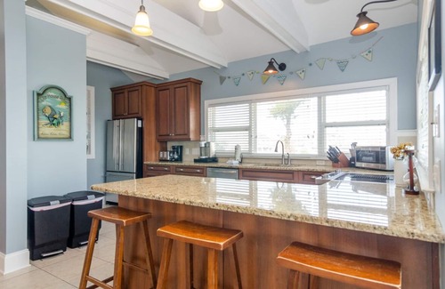 Island Dreamin’ offers an Upgraded Starter Kit* as an added convenience for travelers. Every home includes a basic starter package for guests, however, select luxury homes include additional household items or higher quality items that cater to your needs and help make your vacation more enjoyable. Items provided for this home include conveniences such as custom pump hand soaps and lotions for each bathroom, custom shampoo, conditioner, and body wash for each shower, liquid dish soap and hand lotion in the kitchen, Glad trash bags, Tide pods, dryer sheets, dishwasher pods, as well as an extra roll of toilet paper for each bathroom and two rolls of paper towels for the kitchen. All soaps and lotions are fragrance free, cruelty-free, paraben and sulfate free, and 100% vegan.