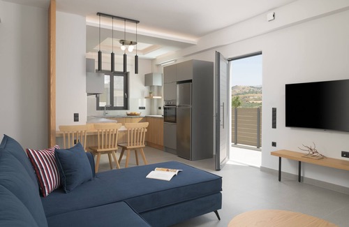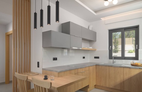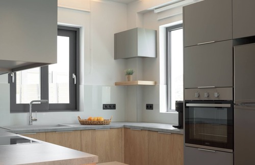 This captivating holiday home boasts sublime interiors that exude a certain ethereal elegance and calm, as well as promises guests arevitalisingstay to renew body, mind and soul in it’s 80m2 space. The retreat can comfortably accommodate up to 4 guests in its 2 bedrooms, and one more guests can sleep at a folding bed that can be placed in the twin bedroom. The Bespoke Home is set entirely on the ground floor. Entering the villa you will find a clean appeal living-cum area with a Smart 60’TV, a fully equipped kitchen ideal for preparing culinary wonders and a dinning area for togetherness time with loved ones. Designed with relaxation in mind, the villa boasts 2 bedrooms on the ground floor each flaunting a distinctive look and feel and also featuring en-suite bathrooms with walk in shower.They are effortlessly and elegantly furnished promising a blissful night's sleep after the day's busy adventures. All bedrooms are fully equipped with beds (High Quality natural mattresses and premium linen), fitted wardrobes, led TVs, wonderful settings and include air conditioning. One more guest can be accommodated in a folding bed (regular mattress) that can be added in the twin bedroom upon request.
