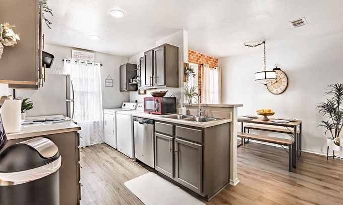 Welcome to ZRoy-AL Stay. This private & comfy townhouse was furnished & decorated with your comforts in mind. Step into the living room with a comfy sofa, 50in TV, & high-speed WIFI for your work or streaming needs. A fully equipped eat-in kitchen to prepare a home-cooked meal, washer, dryer, and available off-road parking. The ZRoy-AL Stay townhouse is 5 minutes from Walmart, HEB Grocery Store, and multiple restaurants. And, just 10-15 minutes from Fort Hood, hospitals, and Killeen Airport.
