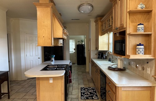 Step into a piece of Abilene's history with this delightful 2-bedroom, 2-bath home, ideally located near South 14th Street and Sayles Boulevard. Built in 1926, it's a unique opportunity to transport yourself back in time while enjoying all the comforts of modern living. This 2-bedroom, 2-bathroom home is your haven away from home, complete with all the amenities you need for a relaxing stay. If you need a 3rd bedroom, this is available for an extra charge of $45 per night. The home has 2 work spaces set up, to enable workersng from home. The iris that blooms in the spring are a sight to behold.